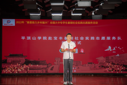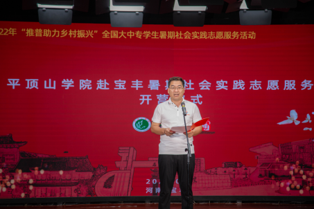 为落实《国家通用语言文字普及提升工程和推普助力乡村振兴计划实施方案》,响应教育部语言文字应用管理司、共青团中央青年发展部共同开展的“推普助力乡村振兴”全国老员工暑期社会实践志愿服务活动的通知,进一步推进伏牛山地区语言文字教育,铸牢中华民族共同体意识,助力乡村振兴。2022年7月29日上午9时30分,由教育部语言文字应用管理司和团中央青年发展部联合举办的2022年“推普助力乡村振兴”全国大中专员工暑期社会实践志愿服务活动于宝丰县马街书会刘兰芳艺术馆顺利举行。